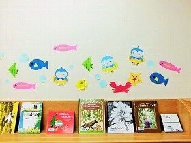 子どもたちは絵本や物語の本棚、普段は行かないような中高生の本のコーナーや外国語の絵本コーナーでもすいぽんを探し、クイズの答えを見つけました。これをきっかけに、これからも図書館を隅々まで探して、いろんな本と出会い、発見してくれることを願っています。