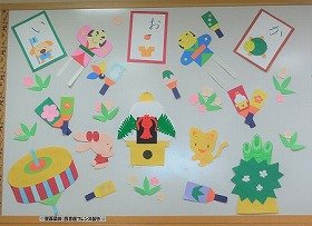 「1月壁面飾り」(ちさと(千里山・佐井寺図書館))
