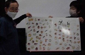 館内のあちこちに設置した、「ぐりとぐら」のおはなしに関するクイズと答えを、参加した子供たちは一生懸命探してくれました。