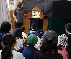 人形劇こんぺいとうの皆さんによる公演で、人形劇や紙芝居、フルートでアニメソングの演奏など多彩なプログラムを楽しむことができました。最後の「おおかみと七ひきのこやぎ」の人形劇では、演者と子どもたちの掛け合いが息ぴったりで、そのやりとりに大人たちも思わず笑ってしまうほどでした。三連休の最終日でしたが、親子連れで多くの参加がありました。