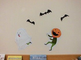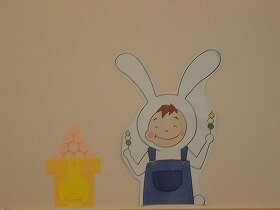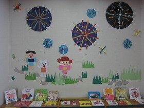 じゅうたんコーナーの壁飾り(さんくす図書館)