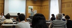 吹田市危機管理室の職員を講師に迎え、吹田市で大きな地震が起きたときの影響や備えについて、たいへんわかりやすく話してもらいました。阪神淡路大震災時の揺れの映像もおりこみ臨場感あふれる講座となりました。非常持ち出し品やトイレをどうするか、新聞紙や段ボールなどを代用した災害用品についてなど、興味深いお話でした。