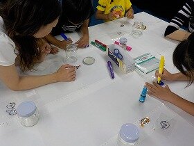 「点字ってどんなもの?」のお話しの後、点字板を使って練習開始。参加した小学生たちは、むつかしい点字の規則もなんのその、すてきな「めいし」を作ってくれました。自分の分だけでなく家族全員の分を作ったり、講師へのお礼状を作ってくれた子もいました!